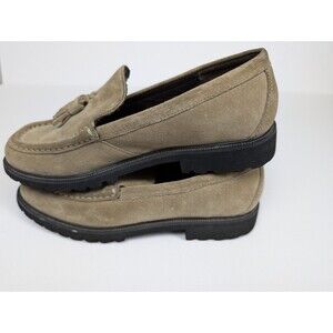 LL Bean Tasseled Leather Loafers Moccasins Women 7 M Tan Suede Rubber Soles