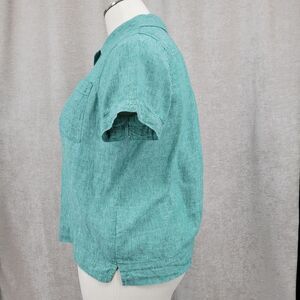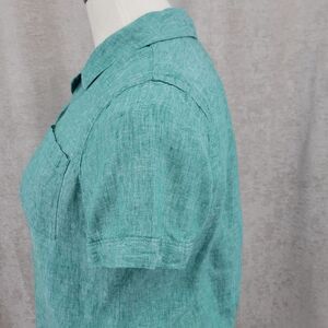 L.L. Bean Teal -ish Linen Short Sleeve Button Down Shirt Top Women's XL