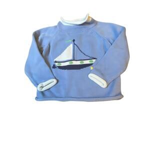 L.L. Bean Toddler Boy Knit Boat Nautical Pullover Mock Neck Sweater Blue Size 2T