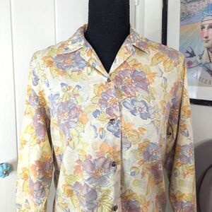Description: L.L. Bean Vintage Floral Top sz 8, soft cotton fabric with lightweight feel, dreamy floral print throughout, made in the USA