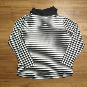 LL Bean Top Sweatshirt Womens Size XL Black White Striped Buttonless Polo Collar