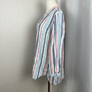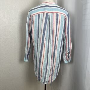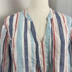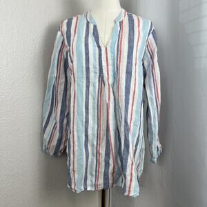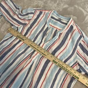 LL Bean Top Womens Large Blue Striped Linen Resortwear Coastal Preppy Beachy