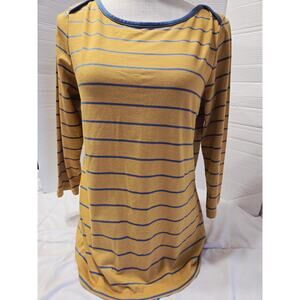 L.L. Bean Top Womens M Orange Stripe Supima Boat Neck Casual Layer Basic Workout