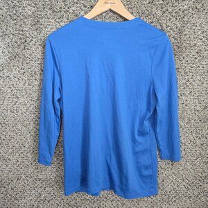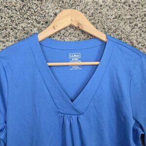 L.L. Bean Top Womens Medium Blue V Neck Supima Cotton 3/4 Sleeve Tee Casual