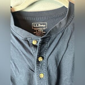 Classic and durable, this L.L. Bean long sleeve henley shirt is made from 100% cotton in a traditional fit. Features a three-button placket and deep navy blue color, perfect for layering or casual wear. Men’s size Large Regular. Excellent pre-owned condition.