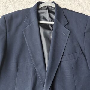 LL Bean Traveler blazer, suit jacket, material 100% micro polyester, color navy blue, men's size 44R.