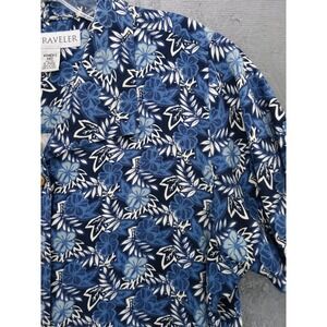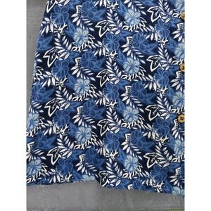LL Bean Traveler Silk Floral Button Down Short Sleeve Shirt Blue M