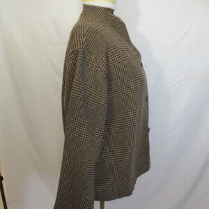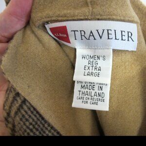 LL Bean Traveler wool-blend tweed coat. Closure is button and loop right at coat edge. Stand up collar. Size XL PTP 24”, length 26.5” Does not appear to have been worn.