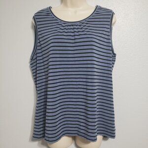 LL Bean Twinset XL Open Front Cardigan Tank Top Jersey Knit Navy Blue Stripe