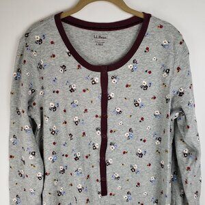 LL Bean Union Suit Gray Waffle Floral One Piece Thermal Pajama Womens Size Large