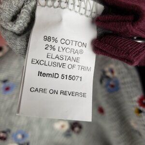 Long sleeve one piece union suit pajama. Gray waffle with small floral print and burgundy trim. Henley style snaps at front. LL Bean item 515071.