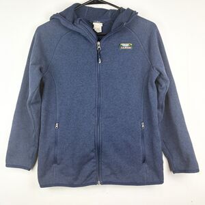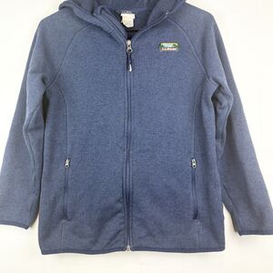 LL Bean Unisex Kids Hooded Sweater Fleece Jacket Bright Navy Size Large 14-16