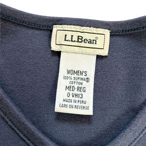 LL Bean V Neck Long Sleeve Top Supima Cotton Navy Blue Womens Size Medium