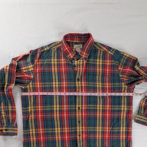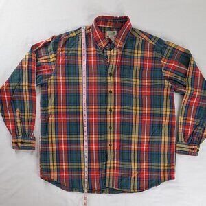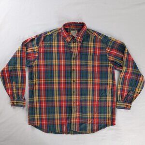 L.L. Bean VTG Red Blue Yellow Green Plaid Flannel Button Down Collared Shirt