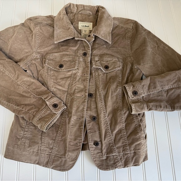 L.L. Bean Velour Velvet Trucker Jacket Womens Tan XS Stretch