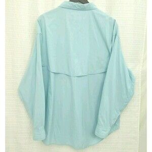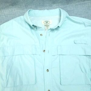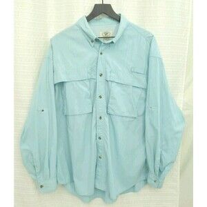 LL Bean Vented Outdoor Fishing Shirt Blue Utility Pockets Hiking Men's XL