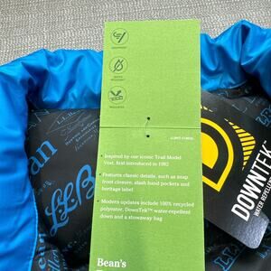 LL Bean Vest Men XL Trail Model Down '82 Blue Snap Up Puffer New with Tags