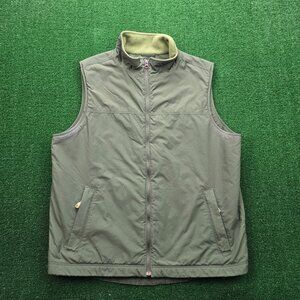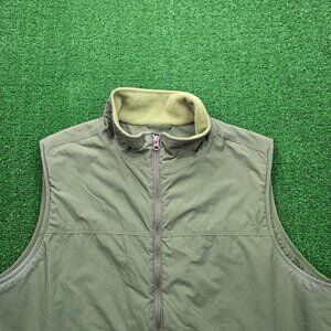 LL Bean Vest Mens Large Tall LT Green Fleece Lined Zip Up Outdoors Nylon 0BDR5