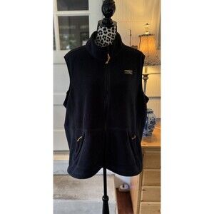 The LL Bean Vest for women in size 3X Plus is a classic and versatile piece perfect for outdoor activities and everyday wear. Made with polyester fleece, it provides warmth and comfort while maintaining a stylish look. The full zip closure and various pockets add functionality to this solid black vest, making it suitable for travel, parties, casual outings, work, and business meetings. Designed with a classic fit and a sleeveless style, this vest is a must-have in any wardrobe, especially during the winter, fall, and spring seasons.
