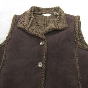 LL Bean Vest Womens Medium Brown Sherpa Fleece Lined Trim Button Front Outdoor
