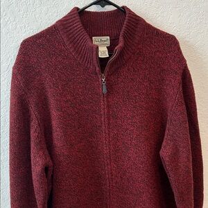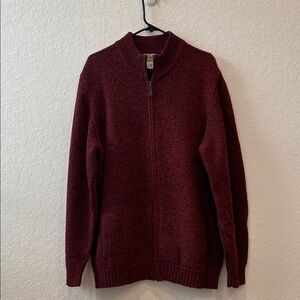 Cozy zip-up sweater by L.L. Bean. Rich deep red color. Ideal for layering.