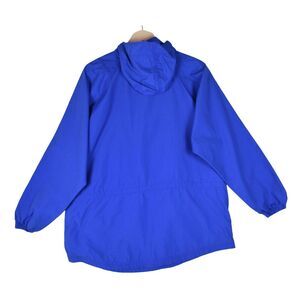 This vintage L.L. Bean pullover anorak jacket is a true classic, crafted in a bold cobalt blue nylon shell with a half-zip front and adjustable hood. Designed for wind and light rain, it features an oversized zippered front pouch, elastic cuffs, and a cinch waist for a snug fit. Made in the USA, this women's size small jacket captures the spirit of retro outdoor gear with quality that lasts.