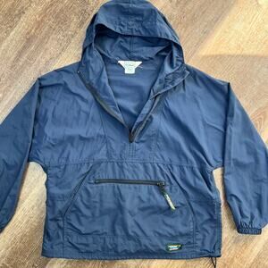 L.L. Bean Vintage Anorak Pullover Hoodie Windbreaker Navy Blue