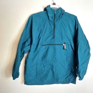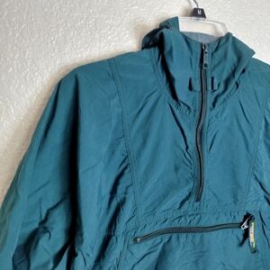 L.L. Bean Vintage Anorak Windbreaker Jacket 1/4 Zip Hooded Green sz L