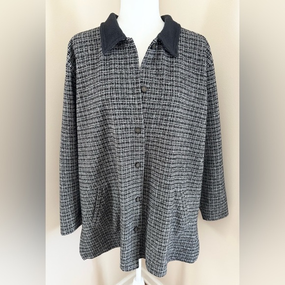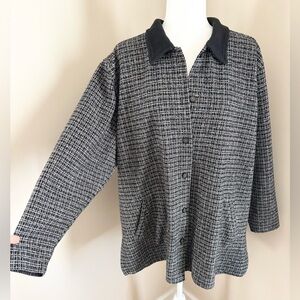L.L. Bean Vintage Black White Houndstooth Plaid Lightweight Shacket -Great vintage condition. Light wear due to age and missing size and material tag. -This has kind of a pea coat style and looks so cute over sweaters! -Fits like like a XL in my opinion -Has pockets -Split hem -Feels like a cotton blend but I am not totally sure -Measurements- (Item laid flat/Approx) Pit to pit 25.5”/ Length 30.5” -Smoke free/Pet friendly home -Feel free to ask questions or send an offer! :) -Tags- vintage retro classic academia fall winter cozy comfy capsule minimalist neutral