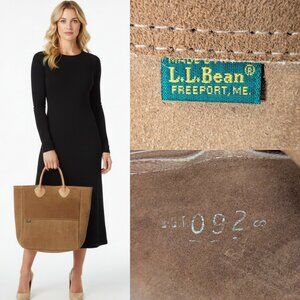 Authentic rare L.L. Bean large suede leather tote in good preloved condition. A highly sought collector's item, this leather tote was crafted by legendary outdoor clothing and recreation equipment maker in Maine. This tote is item # 092 . Overall good condition with some signs of wear, incl spotting/stains, abrasion - see ALL photos for details.