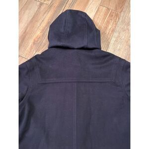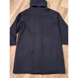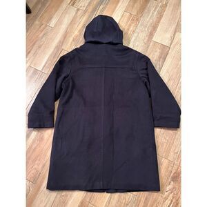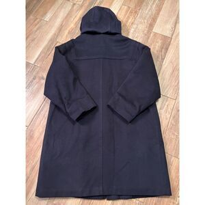 LL Bean Vintage Duffle Coat Womens Navy Blue Lambs Wool Hooded Lined Large