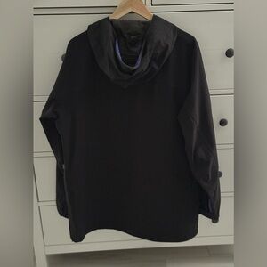 Tag has come off but is enclosed. Seams around the neck and at some places on the waist are missing material that was originally covering the seams. Hood is part of the jacket and cannot be removed. Lining in the hood shows wear.
