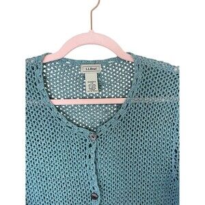 L.L. Bean Vintage Grandma Open Knit Cardigan Womans Size Large Linen Cotton