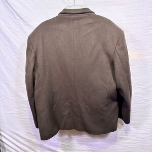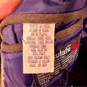 Rare insulated men’s blazer from L.L. Bean. A size XL regular length, it’s olive drab, made of wool, and has full pockets on the outside and as well as a zippered pocket on the inside.