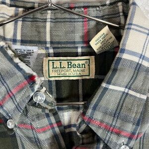 L.L. Bean Vintage Made in USA Medium Broken In Green and White Plaid Shirt