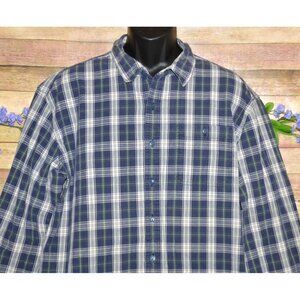 L.L. Bean Vintage Mens XXL Tall Blue Plaid Button Up Long Sleeve Shirt Cotton