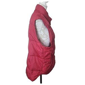 This L.L. Bean vintage red nylon puffer vest is a versatile addition to any wardrobe. With its snap closure and stand-up collar, it's perfect for outdoor activities like hunting, skiing, and hiking. The vest is made of softshell fabric and features Inside zip pocket and 2 outer pockets for storing essentials. The vest is lightweight and packable into it's attached bag(inside the inside zip pocket, making it easy to carry on travel or workwear. The insulated design and goose down insulation material will keep you warm in the winter, fall, and spring seasons. The vest is machine washable and has a regular fit. It's a great choice for men who are looking for a comfortable and functional vest that can be worn for various activities. Weighs 11.7oz