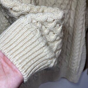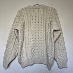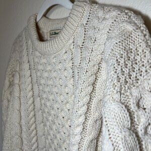 L.L. Bean Vintage Womens Cable Knit Sweater Medium wool Made In Ireland Cream