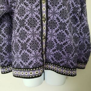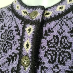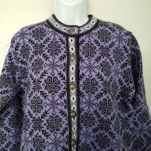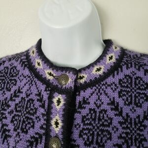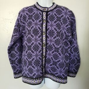 L.L. Bean Vintage Women's Medium 100% Merino Wool Purple Black Sweater Cardigan