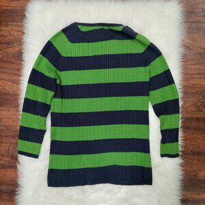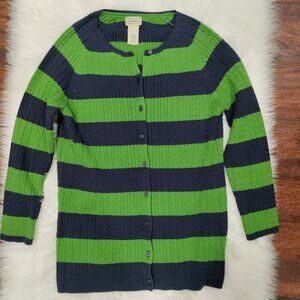 L.L. Bean Vintage Womens Striped Green & Navy Button-Up Cardigan Sweater L