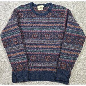 L.L. Bean Vtg Fair Isle 100% Pure New Wool Sweater Made in Scotland Blue Men's M