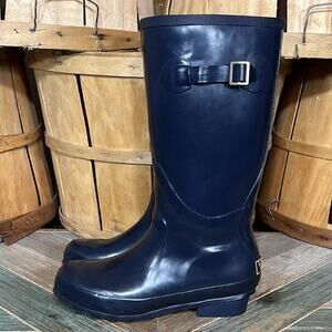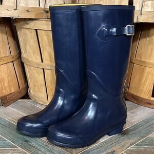 L.L. Bean Wellie Navy Rubber Waterproof Tall Pull-On Rain Boots Womens Size 6