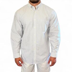 L.L. Bean White and Blue striped long sleeve button up size XL