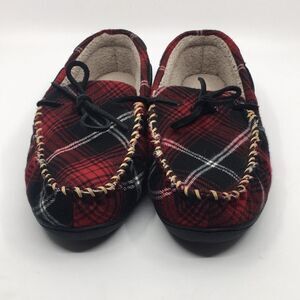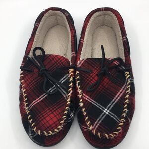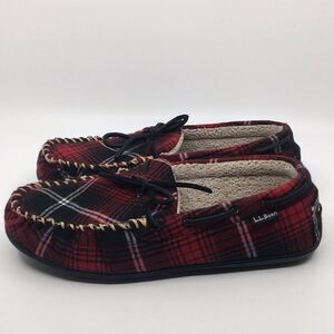 L.L. Bean Wicked Good Slipper Moccasins Mens Size 9 M Red Tartan Plaid
