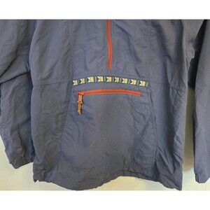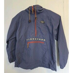 LL Bean Windbreaker Womens L Blue Mountain Aztec Anorak 1/4 Zip Hooded Western