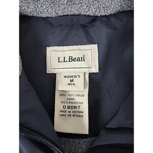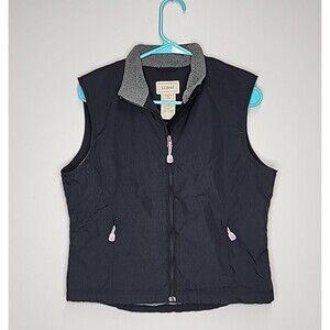 This is an L.L. Bean winter vest for women in size medium. It is made of nylon with a fleece lining, ideal for ski-related activities. The vest is black in color and features a zip closure, pockets, and is designed with a ski theme in mind. Perfect for staying warm and stylish during the winter season.