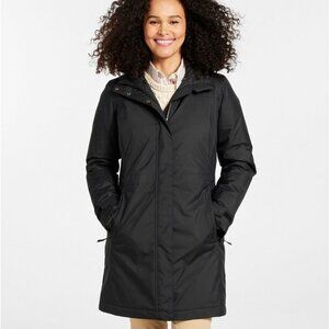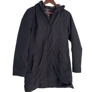 LL Bean Winter Warmer Jacket XS Black Hooded Fleece Lined Mid Length Coat Zip Up