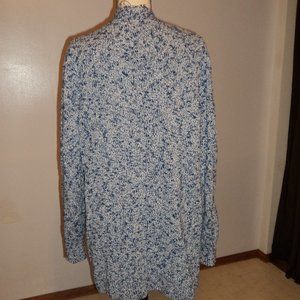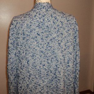 LL Bean Woman's Large Cardigan Sweater Blue White Pockets 100% Cotton