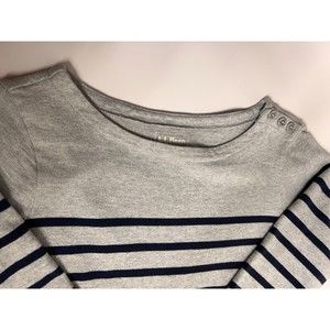 L.L. Bean Womans Size S Reg Grey Navy Blue Stripped Dress 3/4 Sleeves