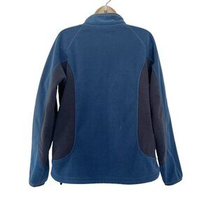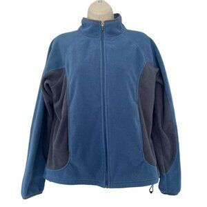 LL Bean Woman's Sz M Blue & Gray Polartec Fleece Full Zip Jacket Hidden Pockets